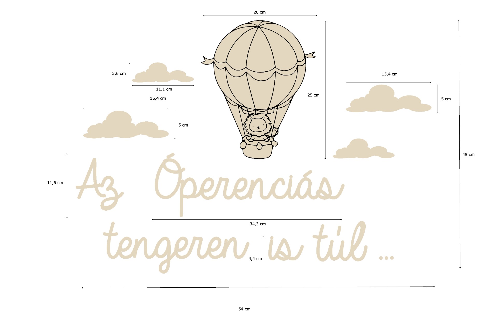 Az Óperenciás tengeren is túl felirat + Hőlégballon dekor - Natúr fa (4 mm) / Fehér HDF (3 mm)