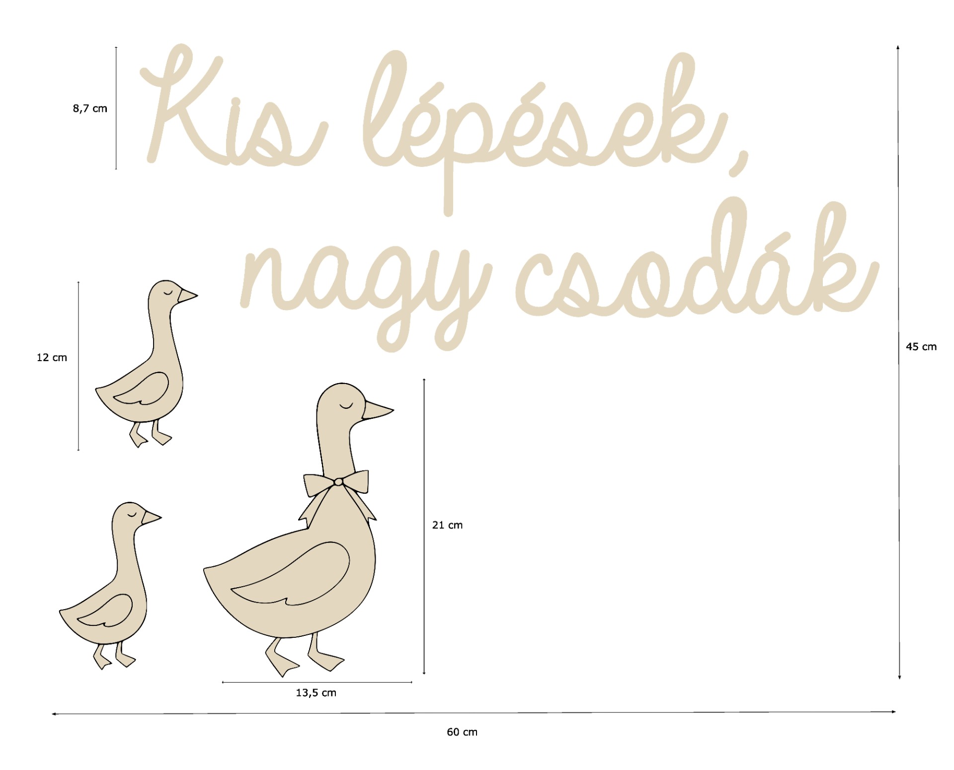 Kis lépések, nagy csodák felirat + Kacsás dekor - Natúr fa (4 mm) / Fehér HDF (3 mm)