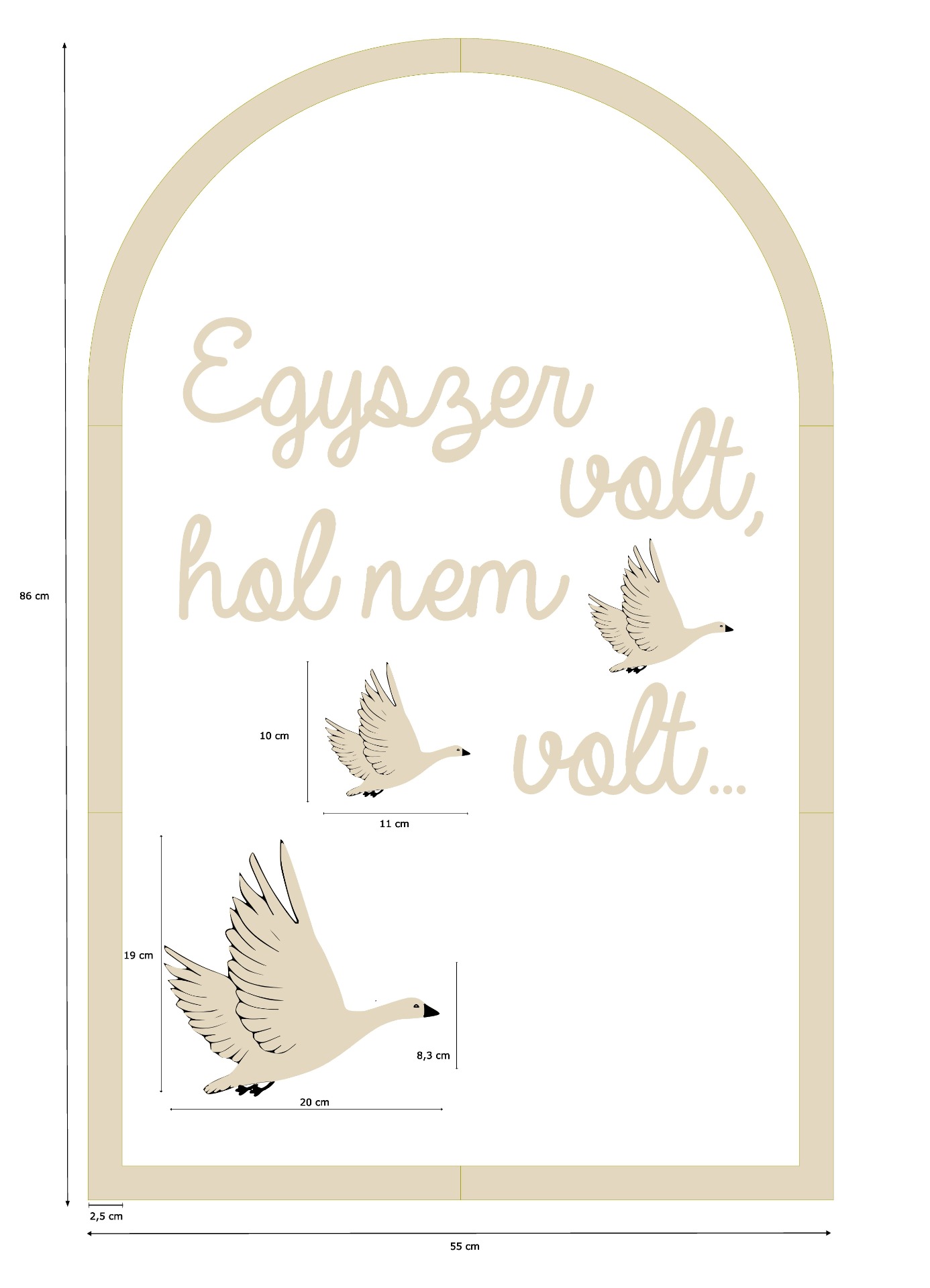 Egyszer volt hol nem volt felirat + Ludas dekor - Natúr fa (4 mm) / Fehér HDF (3 mm)